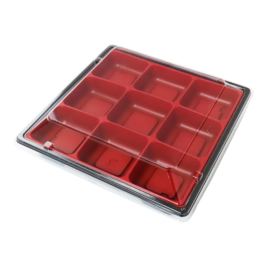 ・おもてなし料理に最適な9つ仕切り付きの角皿、フタ付き。