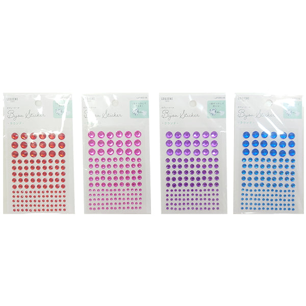 キラキラと反射するカットが美しい、樹脂製のラウンド形ラインストーンシールです。