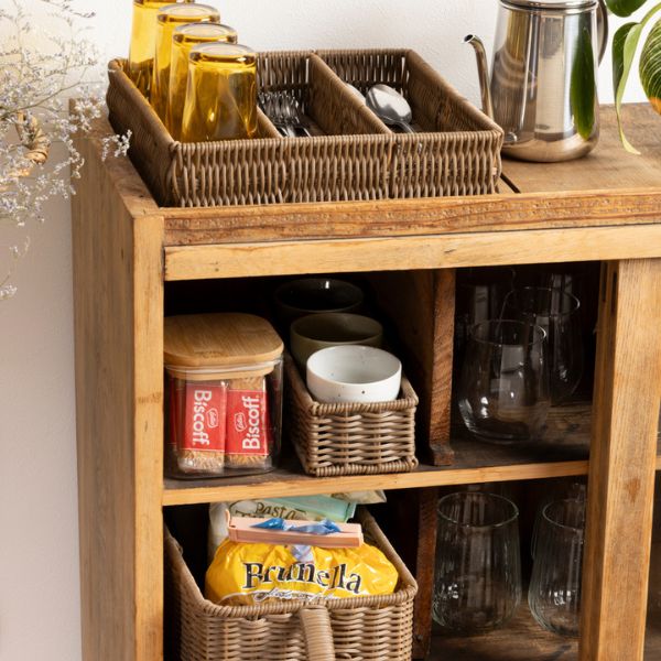 棚の中や、引き出しの中のカトラリー類の整理にも便利なマルチなラタン風収納です!