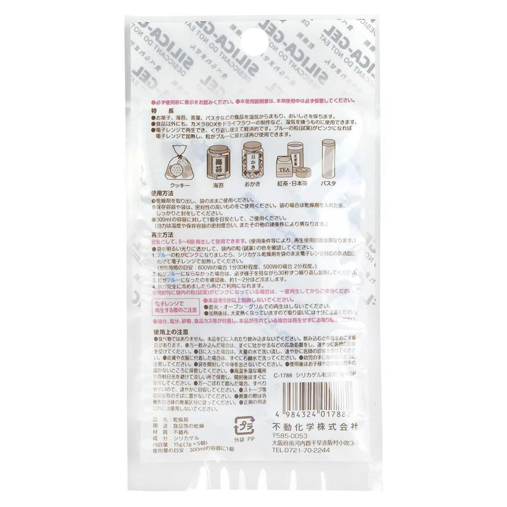 ブルーの粒がピンクになれば電子レンジで加熱し粒がブルーに戻れば再び使用できる。