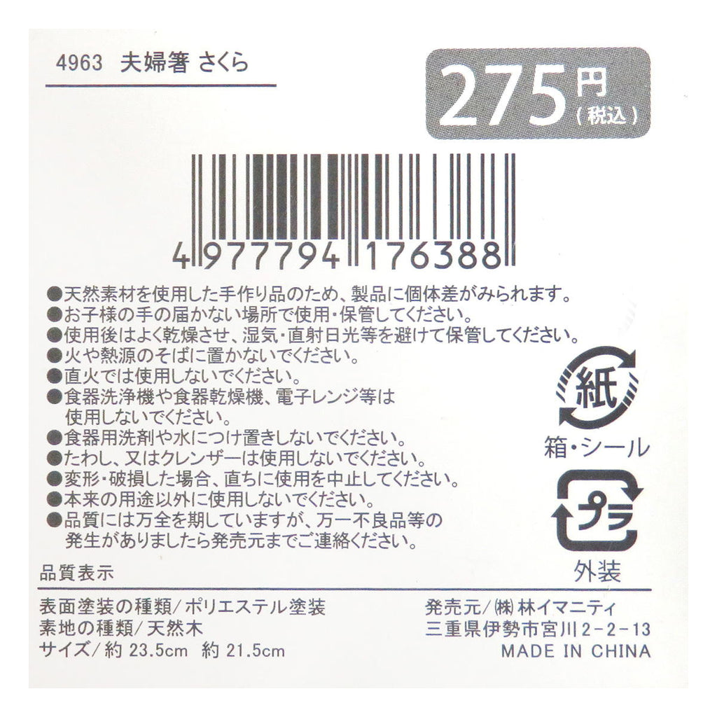 紙製の化粧箱に長さの違う2膳のお箸が入っています。
