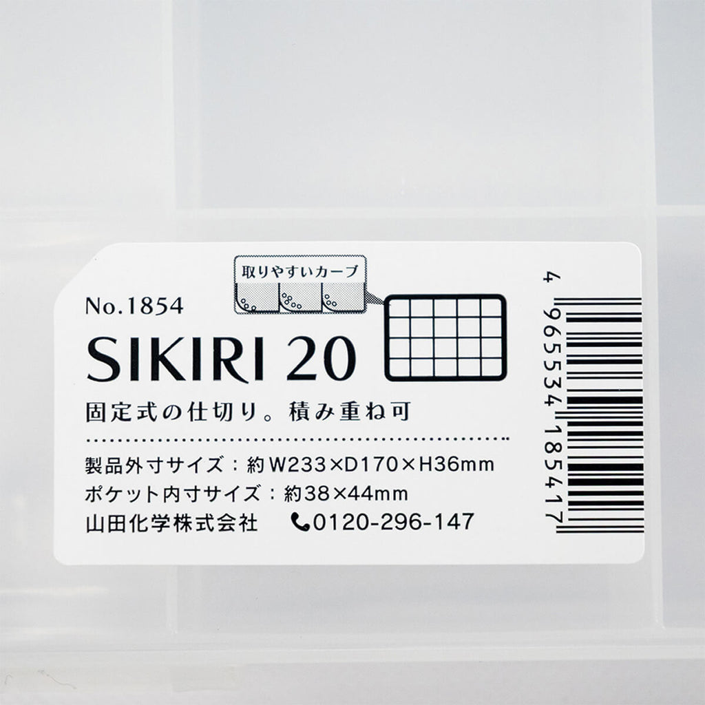 <SIKIRIシリーズ展開>・SIKIRI0:170×233×34mm(ケース内仕切りなし)・SIKIRI3:170×233×34mm(ケース内3仕切り)・SIKIRI6:170×233×34mm(ケース内6仕切り)・SIKIRI10:170×233×34mm(ケース内10仕切り)・SIKIRI 20:170×233×36mm(ケース内20仕切り)・SIKIRI15:170×233×38mm(ケース内15仕切り)・SIKIRI30:170×233×34mm(ケース内30仕切り)・SIKIRI ネイルチップケース:外寸約115x170xH18mm(ケース内20仕切り)