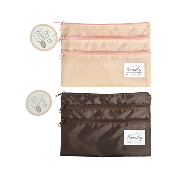 化粧ポーチ トラベルポーチ ナチュラルカラー トリプルファスナーケース 約150×210mm 333359