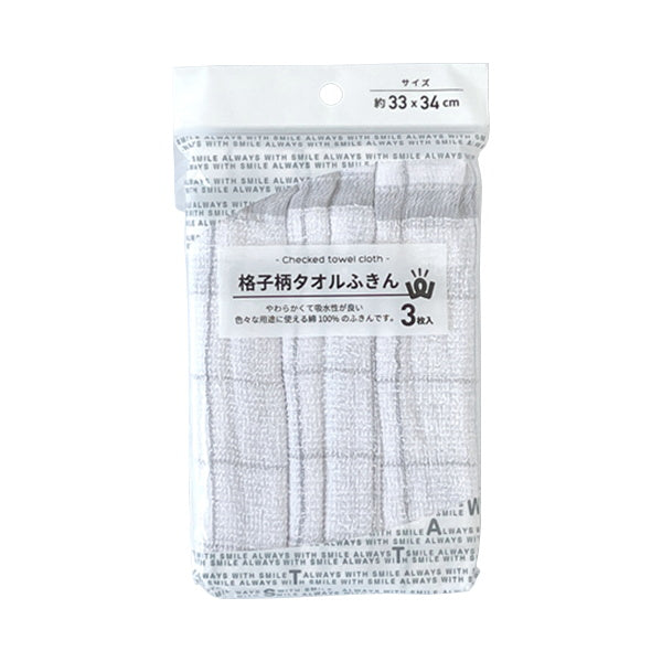 チェック柄の綿100%のふきんで、洗い替えに便利な3枚入りです。やわらかくて吸水性の良い素材です。