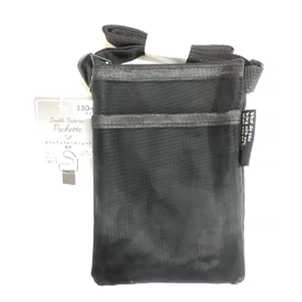 ショルダーバッグ ポシェット サコッシュ ミニショルダー ダブルファスナーポシェット縦型 黒 18×13cm 347457