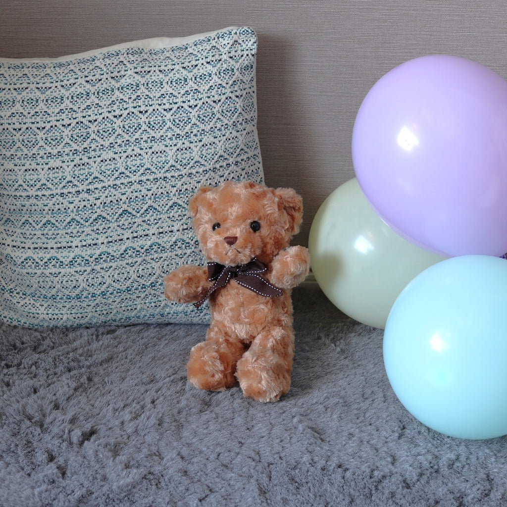 本商品はやわらかな雰囲気のブラウンカラーで、どんなインテリアにも自然になじみます。ナチュラルな色合いが、ぬいぐるみのやさしい表情や質感をさらに引き立ててくれます。性別や年齢を問わず、幅広い方に手に取っていただきやすい落ち着いた印象のカラーです。