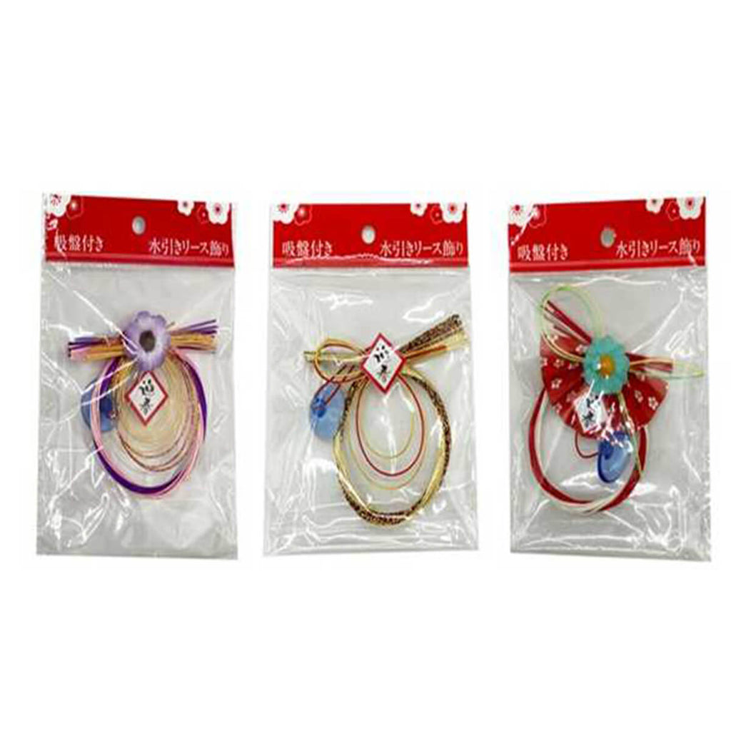 裏に吸盤のついた小さな水引きのお正月リースです。