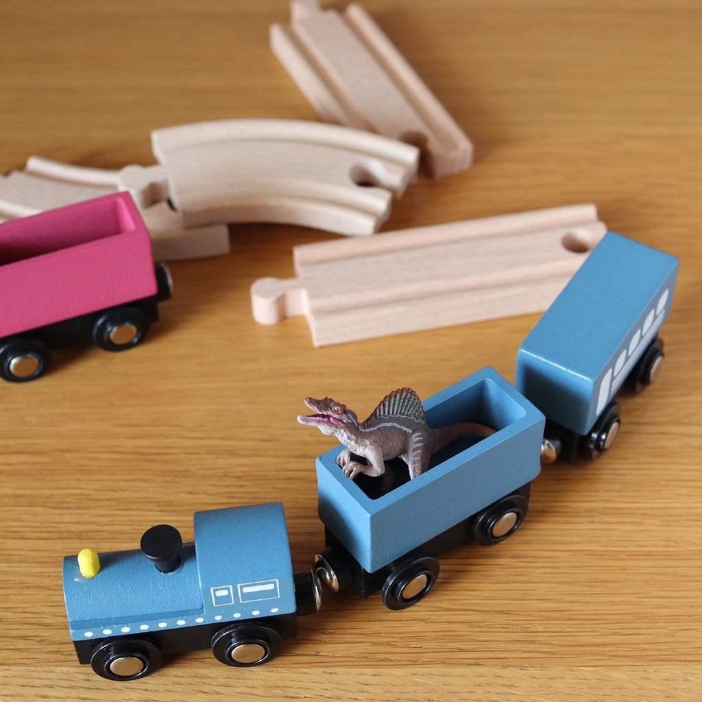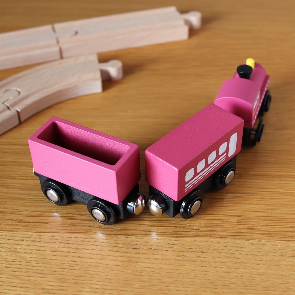 前後に内蔵された磁石によって、他の車両とスムーズにつなげられるのが魅力。力を入れなくてもピタッとくっつき、小さな子どもでも簡単に操作できます。車両を増やして長い列車にしたり、自由な組み合わせでオリジナルの編成を楽しんだり、想像力を育む遊び方が無限に広がります。