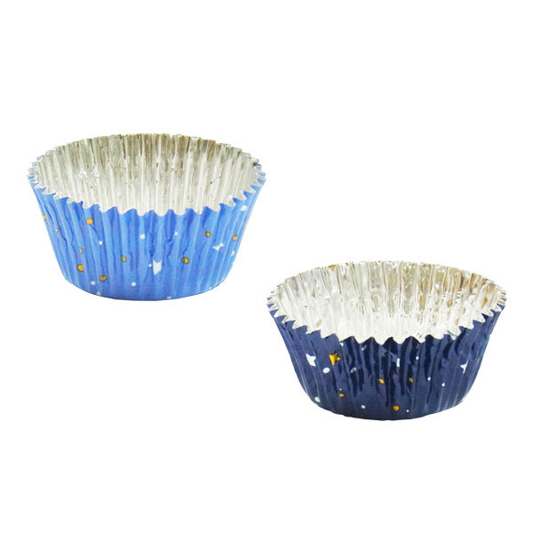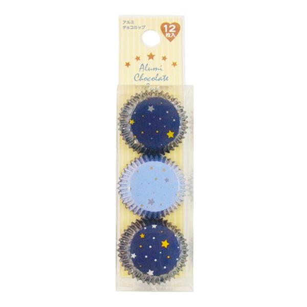 たくさんの星が散りばめられたパープルとネイビーのアルミチョコカップです。