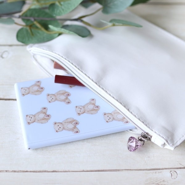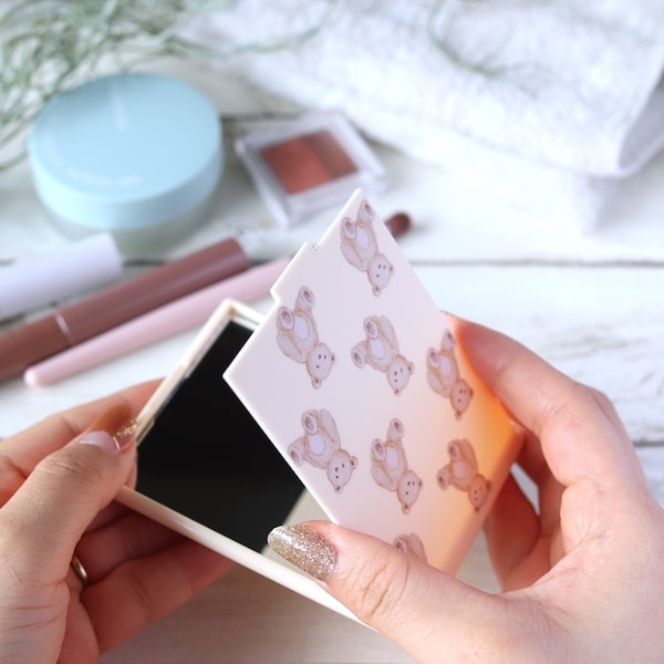 レトロで愛らしい。くま柄デザインが可愛い折りたたみ携帯ミラー