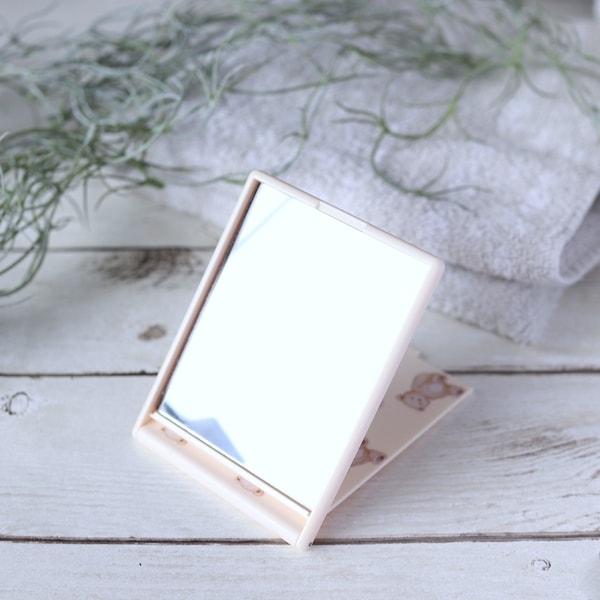 折りたたみタイプの本体は、スタンドミラーとしても使える仕様。メイク直しやコンタクトの装着時など、両手を使いたいときに大活躍。角度もしっかり安定するので、外出先でもストレスなく使えます。シンプルながら実用性をしっかり備えたデザインで、毎日のちょっとした身だしなみに頼れる存在です。