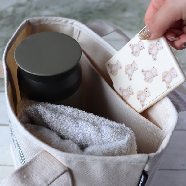 カラーは、柔らかな印象の「クリーム」と涼しげで清潔感のある「ライトブルー」の2色。どちらも手書き風のくま柄が引き立つ絶妙なトーンで、年齢問わず使いやすいのが魅力です。プレゼントやちょっとしたギフトにも喜ばれるデザインで、自分用にもお友達用にもおすすめです。