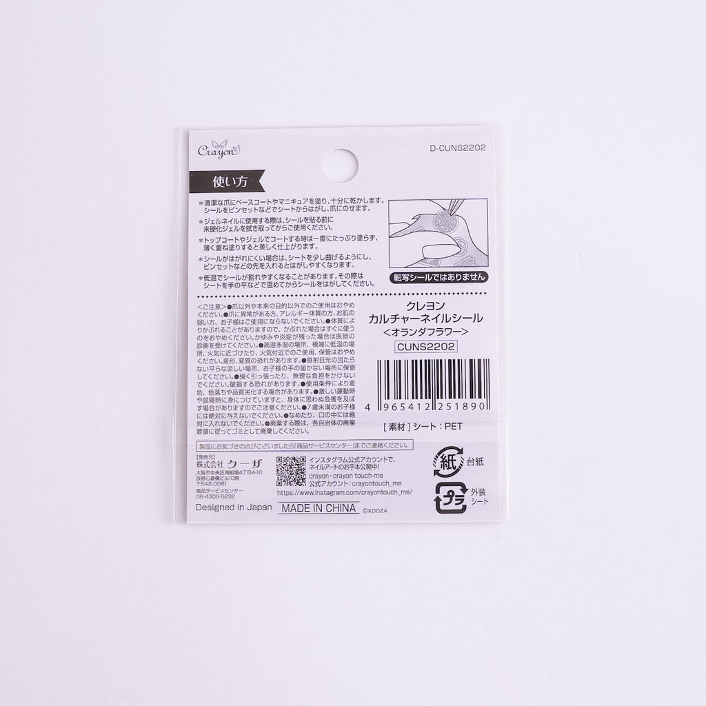 「オランダフラワー」を含むカルチャーネイルシールは、チャイニーズシンボルやペルシアンアストロなど、他国の文化をテーマにしたシリーズとして展開中。それぞれの国の個性を指先で楽しめるため、旅行気分を味わいたい方にもおすすめ。ファッションやイベントに合わせたデザイン選びが楽しめます。