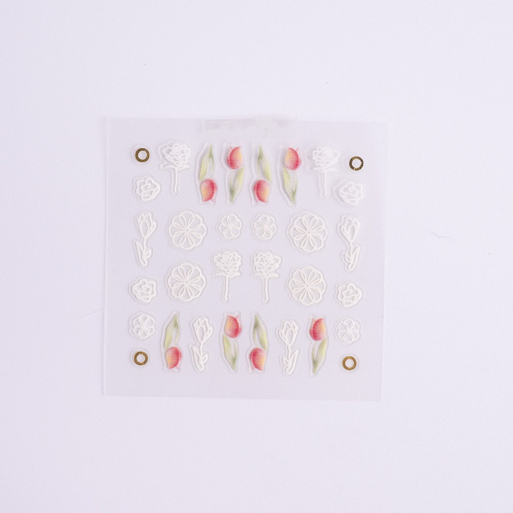 シールは柔らかく薄手で、爪のカーブにもなじみやすいのが特徴。浮きにくく、仕上がりが自然なのにしっかりと存在感があります。トップコートで覆えば剥がれにくくなり、長く楽しむことができます。細部まで繊細に作られているため、デザインの美しさを存分に引き立ててくれます。