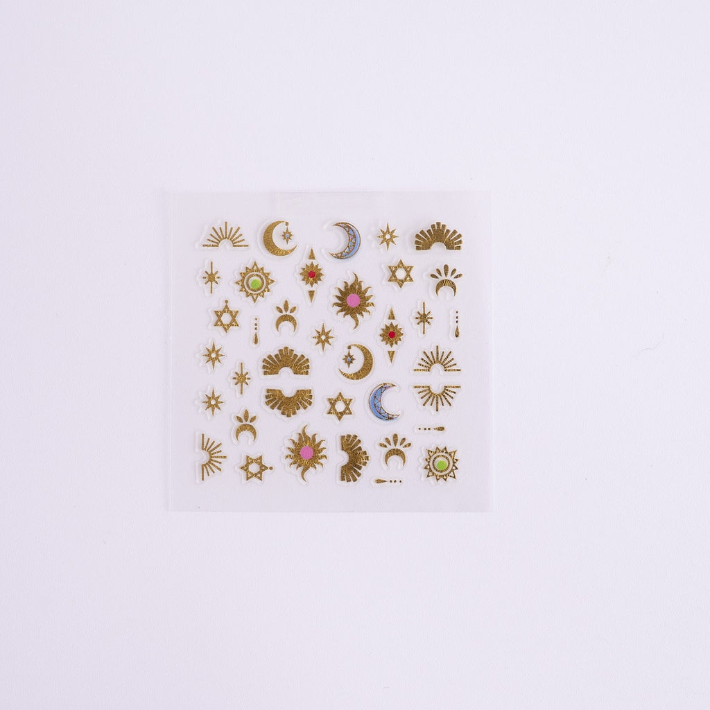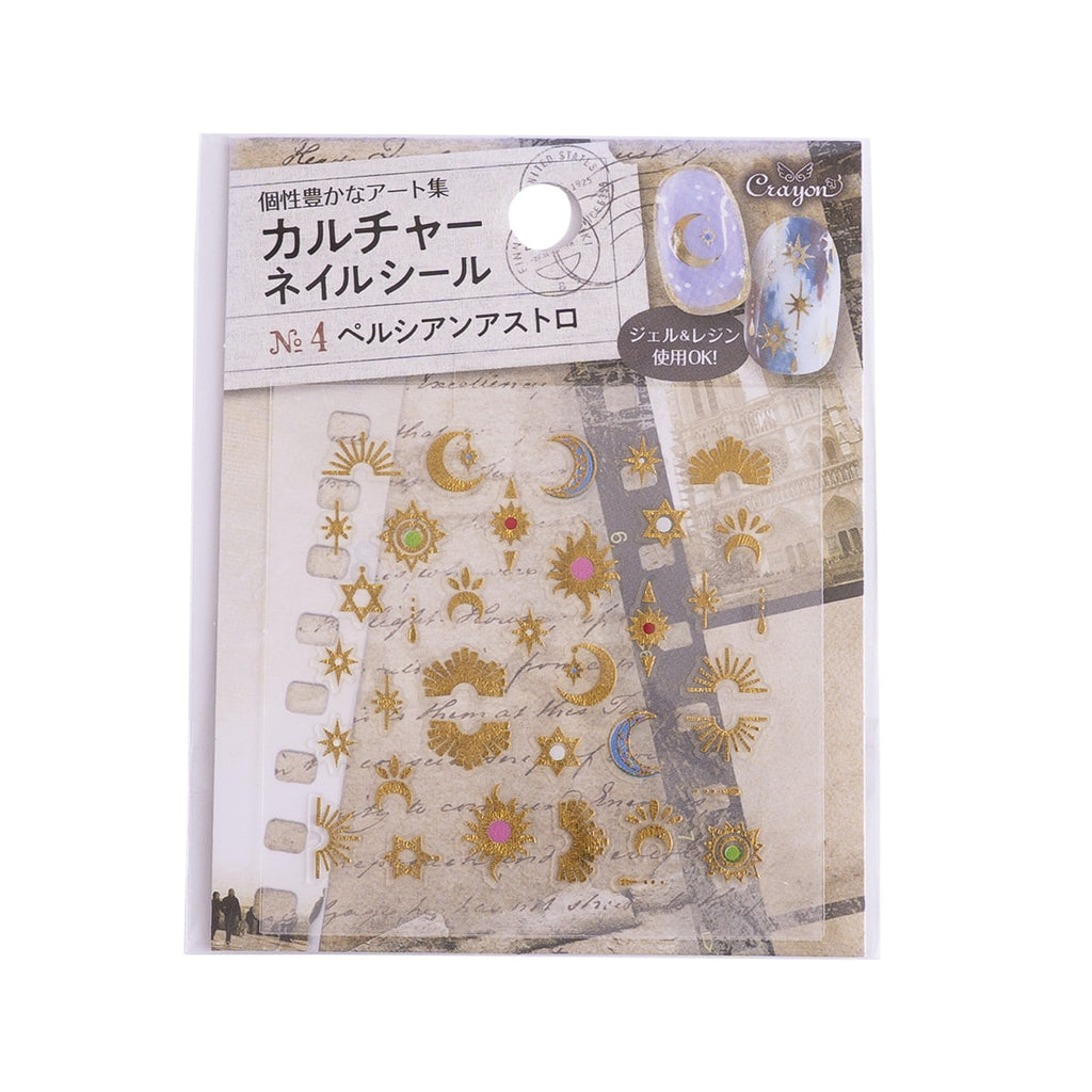 ペルシャ文化を思わせるアストロロジー(占星術)モチーフをちりばめた幻想的なデザインが特徴。月・星・太陽などのシンボルが、どこか神秘的でエキゾチックな印象を指先に与えてくれます。アクセント使いはもちろん、組み合わせ次第で個性的な世界観も表現可能。ナイトシーンやパーティーネイルにもぴったりの存在感です。
