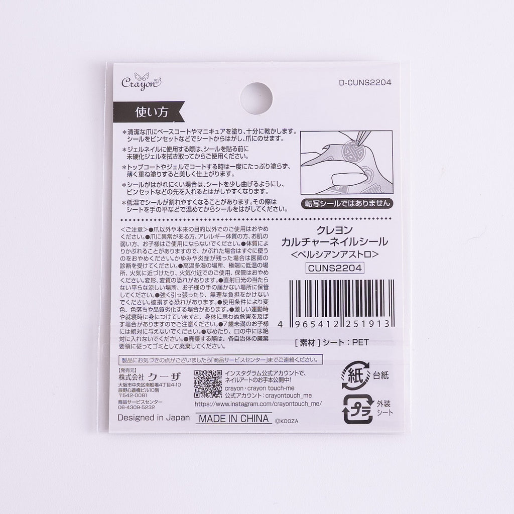 「ペルシアンアストロ」は、世界の文化をテーマにしたカルチャーネイルシリーズのひとつ。他には「チャイニーズシンボル」「オランダフラワー」など、異なる国や地域のテイストが楽しめるラインナップが揃っています。気分や季節、イベントに合わせて指先で異文化を取り入れることで、ネイルにもっと自由と楽しさを。