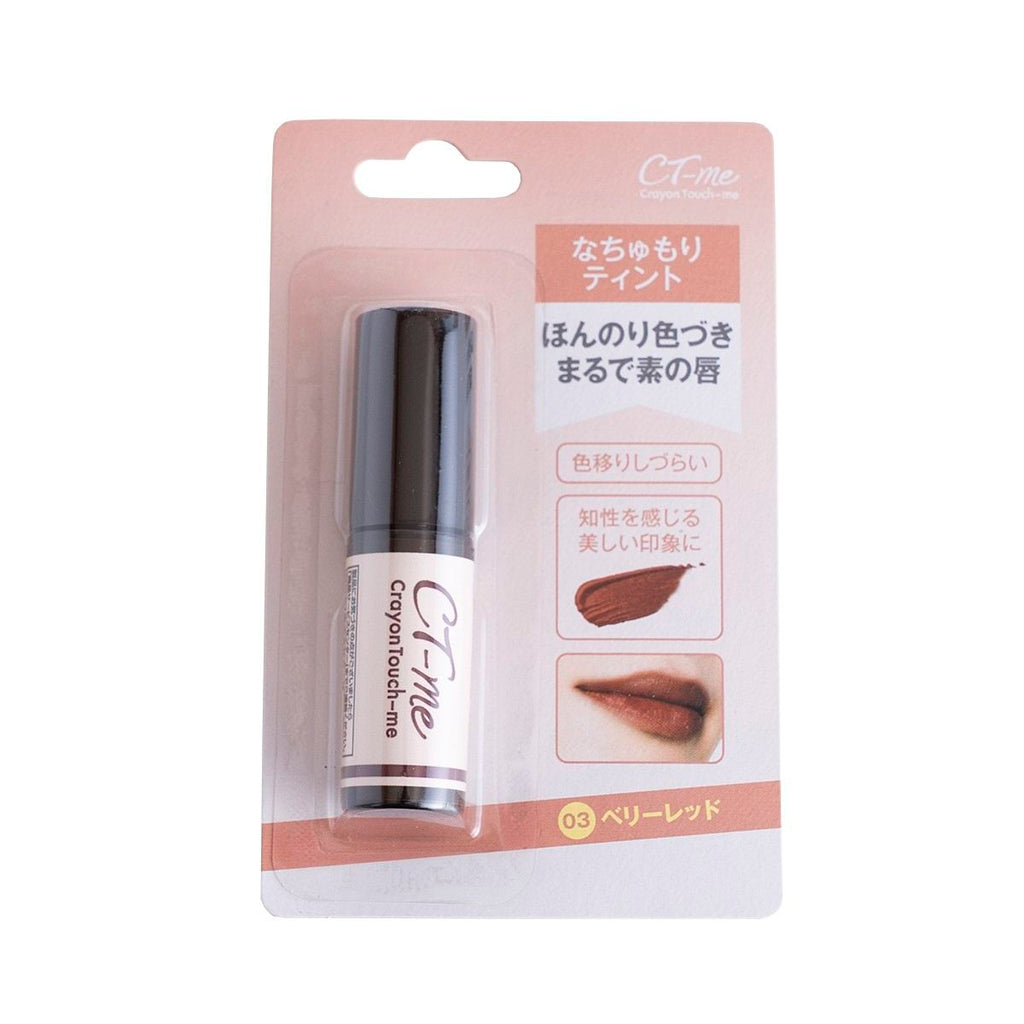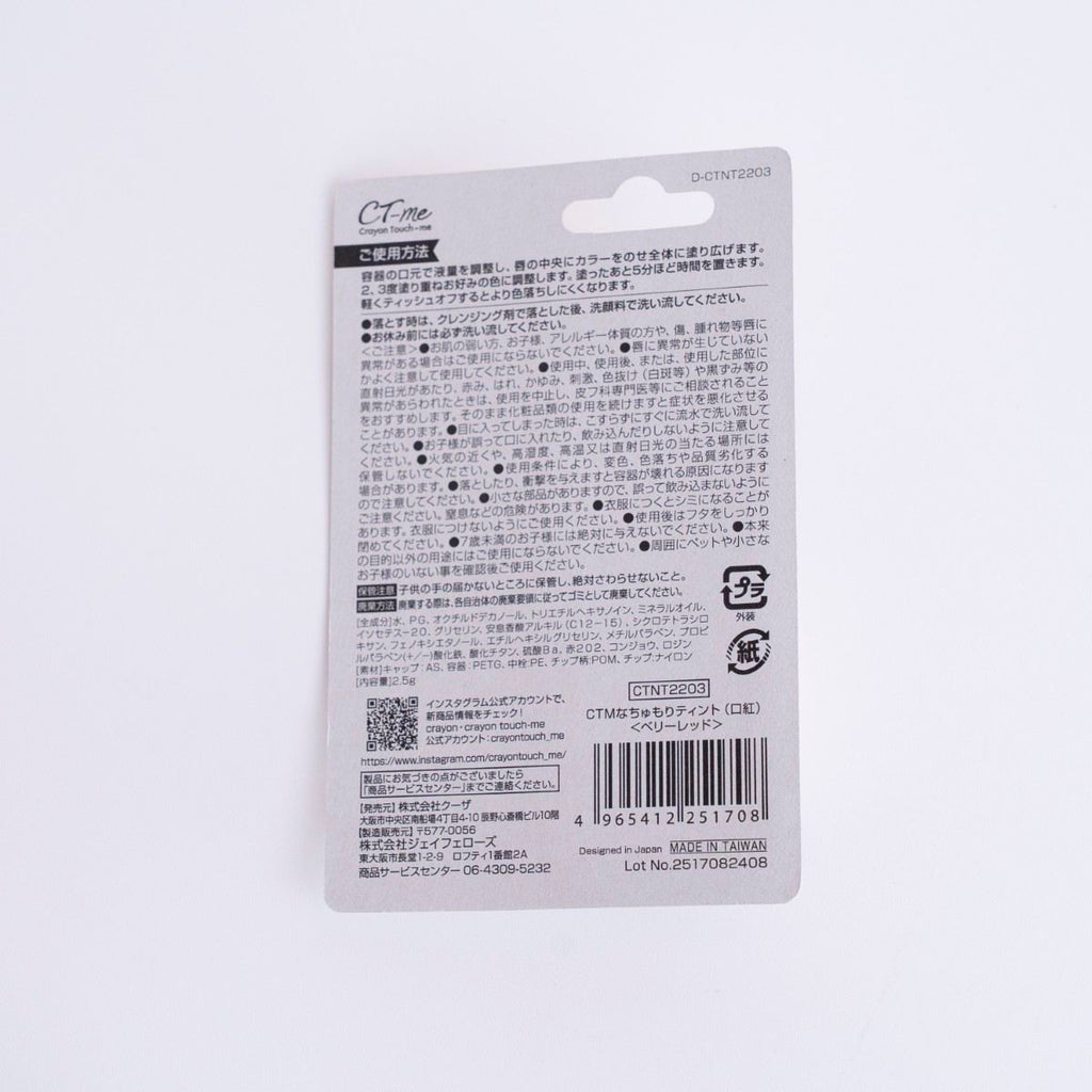 >CTM(クレヨンタッチミー)の「なちゅもりティント〈03 ベリーレッド〉」は、派手すぎない落ち着いたベリー系カラーで、素の唇に自然に馴染む色づきが魅力。主張しすぎず、知的で洗練された印象に仕上がります。普段使いはもちろん、オフィスメイクや学校メイクにもおすすめです。