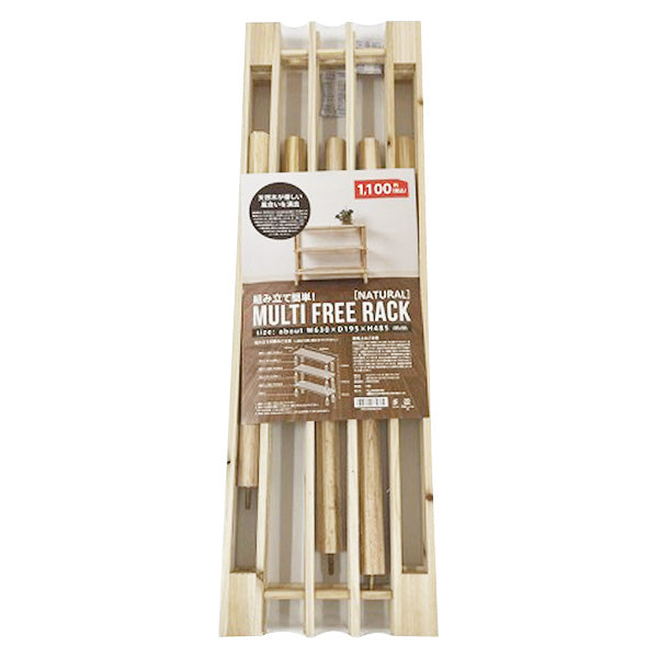 ナチュラル色の木製3段ラックです。ベランダなどでの小スペースの陰干し等でご使用いただける、マルチ用途の組み立て式ラック(工具不要)です。