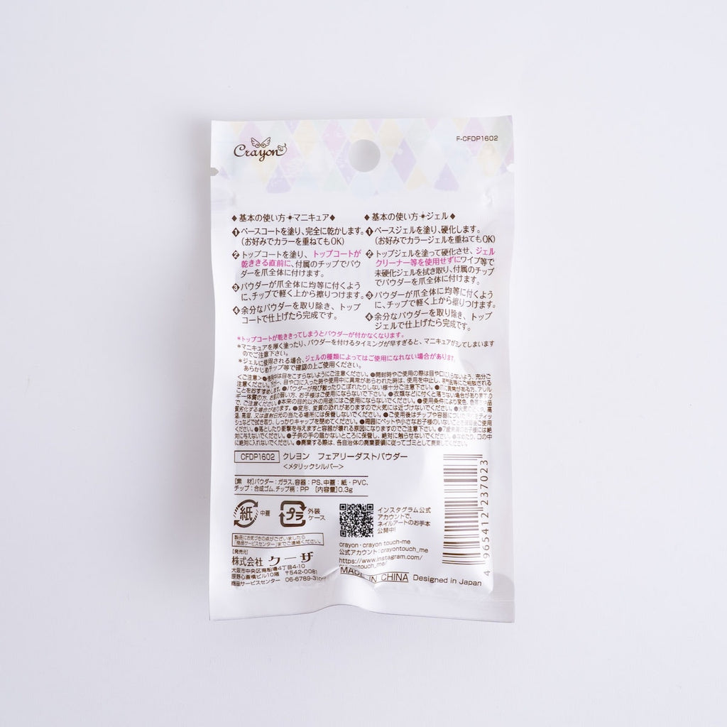 フェアリーダストパウダーは、サッとひと塗りするだけで、まるで魔法をかけたような輝きを放つラメパウダーです。メタリックシルバーの粒子が光を受けて繊細に反射し、指先やアクセサリーパーツにきらめきをプラス。ネイルアートはもちろん、クラフト作品の仕上げにも最適で、仕上がりに差をつけたい方にぴったりです。