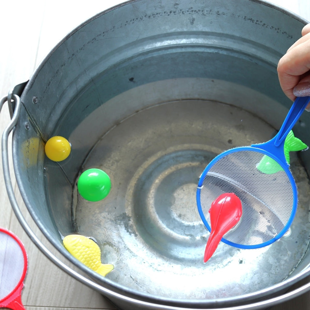 すくい網の色は赤と青の2色がセットになっており、兄弟やお友達と一緒に遊ぶ際にも自分の色を選べる楽しさがあります。魚やボールもカラフルで視覚的に楽しめるため、小さなお子様の興味を引きつけ、遊びへの意欲を高めてくれます。