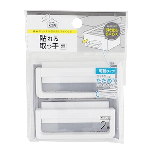 こちらのアイテムは、ピタッと収納ケースなどに貼り付けできる取っ手。Mサイズ、2個入りです。