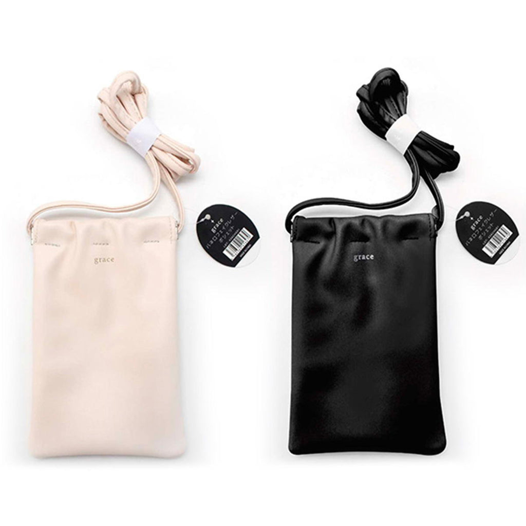 ショルダーバッグ スマホショルダー ポシェット サコッシュ バネ口フェイクレザーポシェット(ブラック・ホワイト) 356322