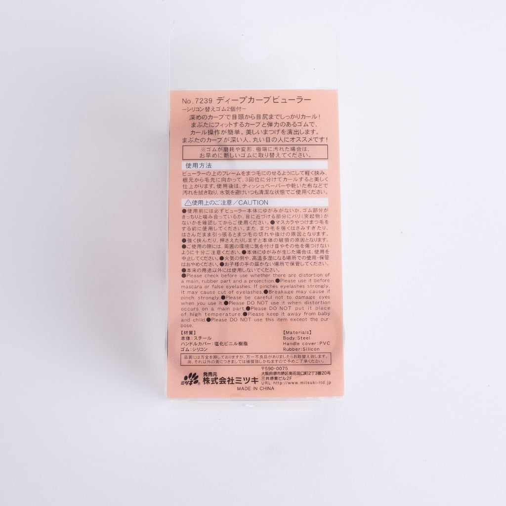 「ディープカーブビューラー」は、まぶたのカーブが深い方や丸い目元の方に特におすすめの設計。一般的なビューラーでは上がりづらい根元のまつげにもフィットしやすく、目頭から目尻まで均一にカールをつけやすい形状です。目元の印象を自然に、でもしっかりと際立たせたい方に最適なアイテムです。