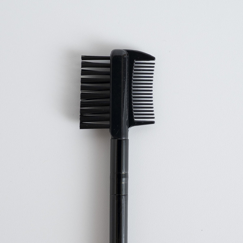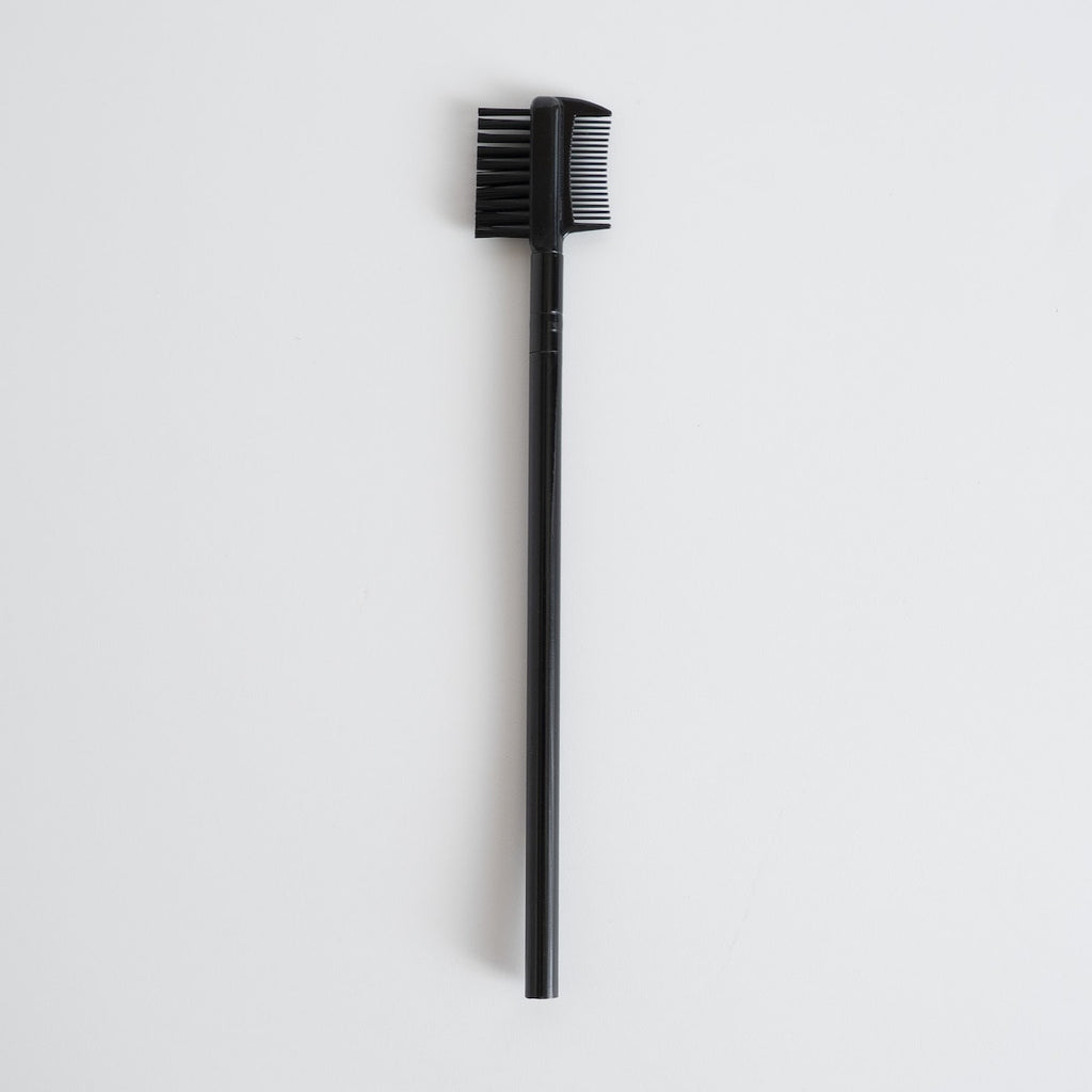 このアイブローコームは、片側がコーム、もう片側がブラシという2WAY仕様で、眉毛とまつ毛をこれ一本で整えられるのが大きな特長です。マスカラのダマを取り除くためのコームと、ふんわり自然な眉に仕上げるためのブラシが一体化しており、メイクツールを複数使う手間が省けます。忙しい朝にも時短が叶い、ポーチの中もスッキリと整理できます。