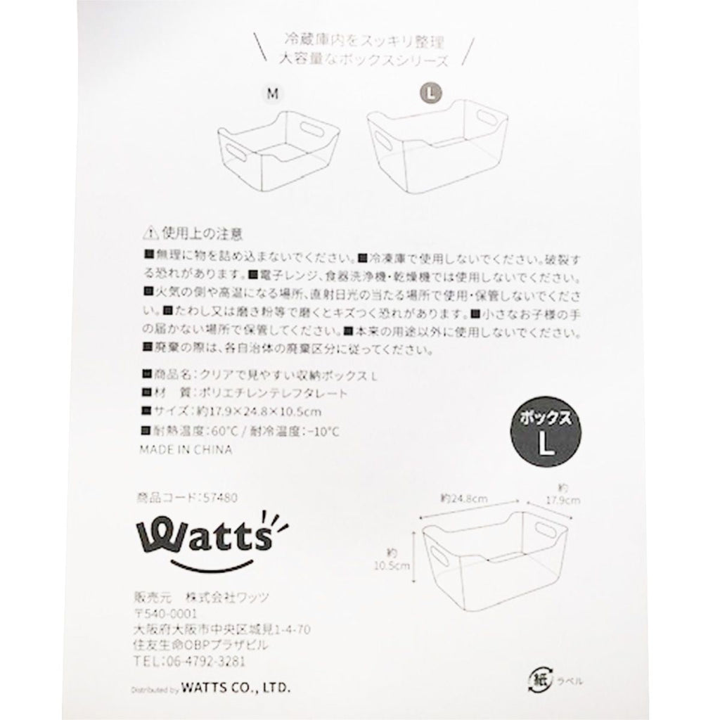 こちらの商品は、ワッツの雑貨店、Tokino:ne(ときのね)のラインナップ商品で、クリアな冷蔵庫収納ケースです。引き出し用の穴も開いていて、手前に引き出しやすい。ビン類やチューブ類の保存にも便利です。