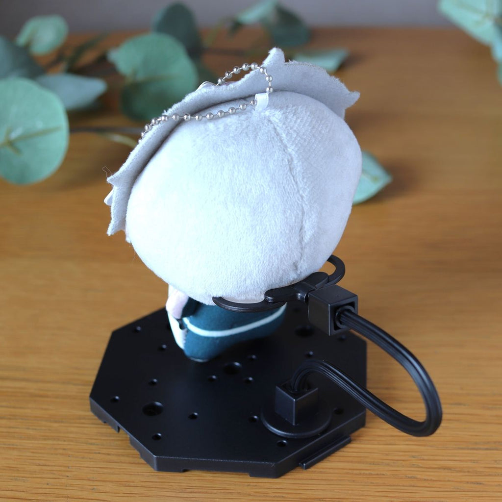 対応目安サイズは幅50mm×高さ130mm、重さ50gまで。一般的な可動フィギュアやラバーストラップ、ぬいぐるみにも対応しており、軽量ながらしっかりとした安定感を実現しています。台座のサイズは約103×100mmと省スペースなので、棚やデスク上でも邪魔にならず、複数使いにも適しています。