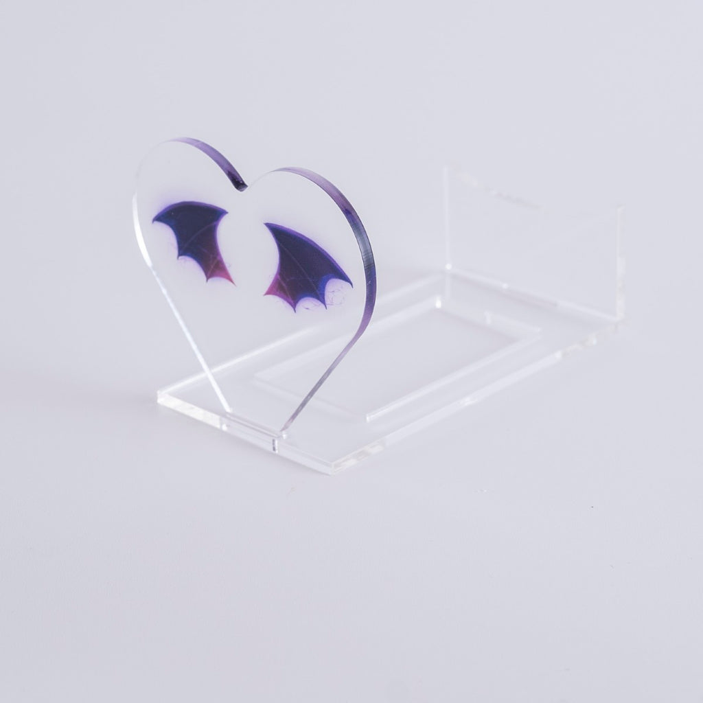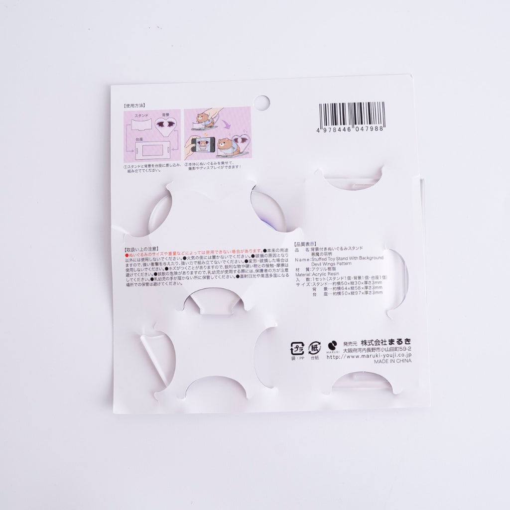 こちらのアイテムは、俵型ぬいぐるみを置くと羽が生えているように見える悪魔の羽柄のアクリルスタンド。