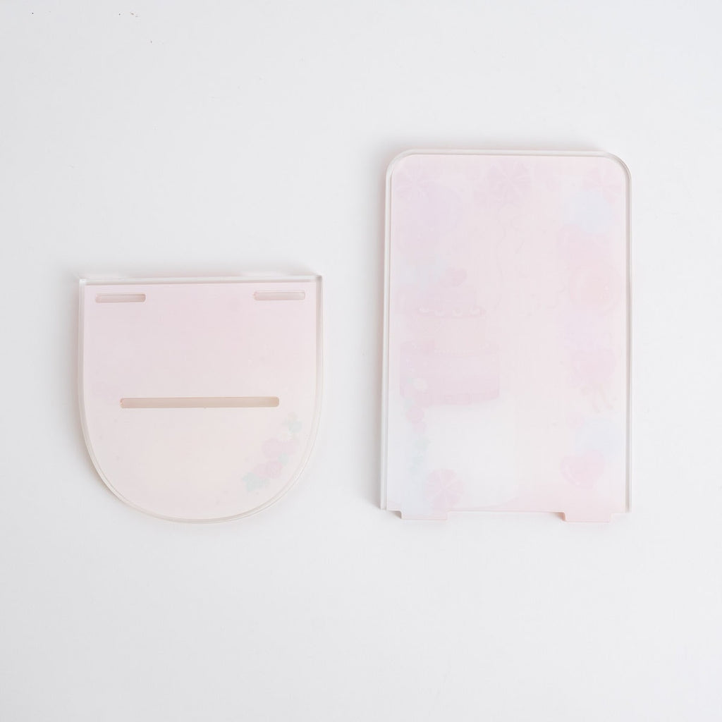 スタンドと台座の2パーツで構成されており、推しのアクリルスタンドをしっかり固定できる設計。厚さ約3mm・幅50mm・奥行3mmの穴サイズに対応しており、安定感も抜群です。お気に入りのアクスタが倒れにくく、安心して飾ったり撮影したりできるのが魅力です。