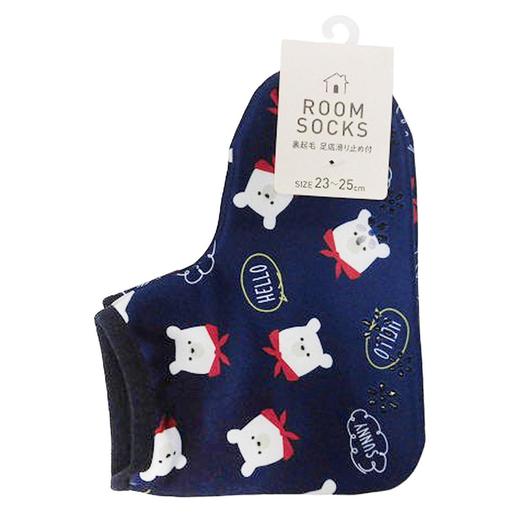 こちらのアイテムは、シロクマ柄がかわいい、内側裏起毛の薄手のルームソックスです。足底には滑り止め付き。