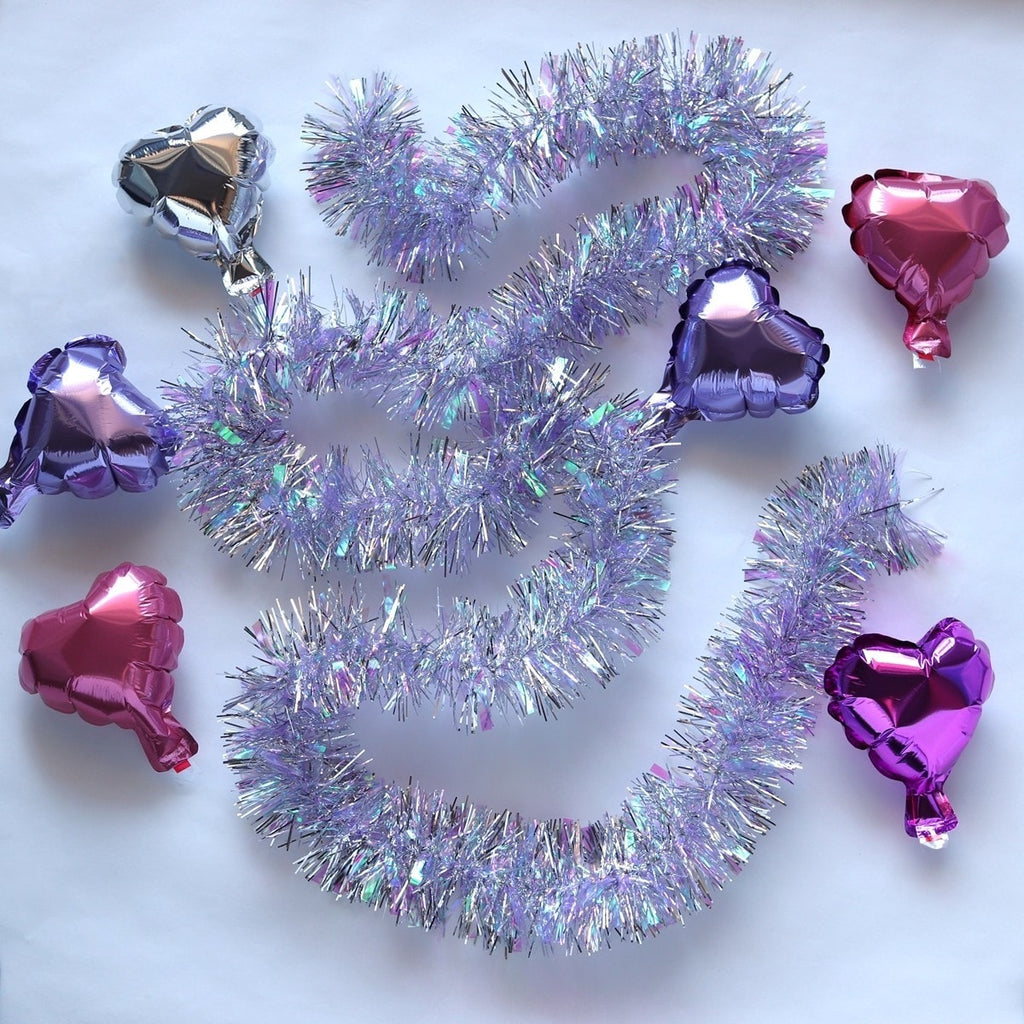 見る角度によって光の反射が変化する、ラメ調のパープルモールです。飾るだけで空間の印象を華やかに演出できます。ポリエチレンテレフタレート製の素材が光をやわらかく反射し、誕生日やイベント、季節のパーティー装飾などに活用できます。壁やテーブルまわりなど、さまざまな場所に取り入れやすいアイテムです。