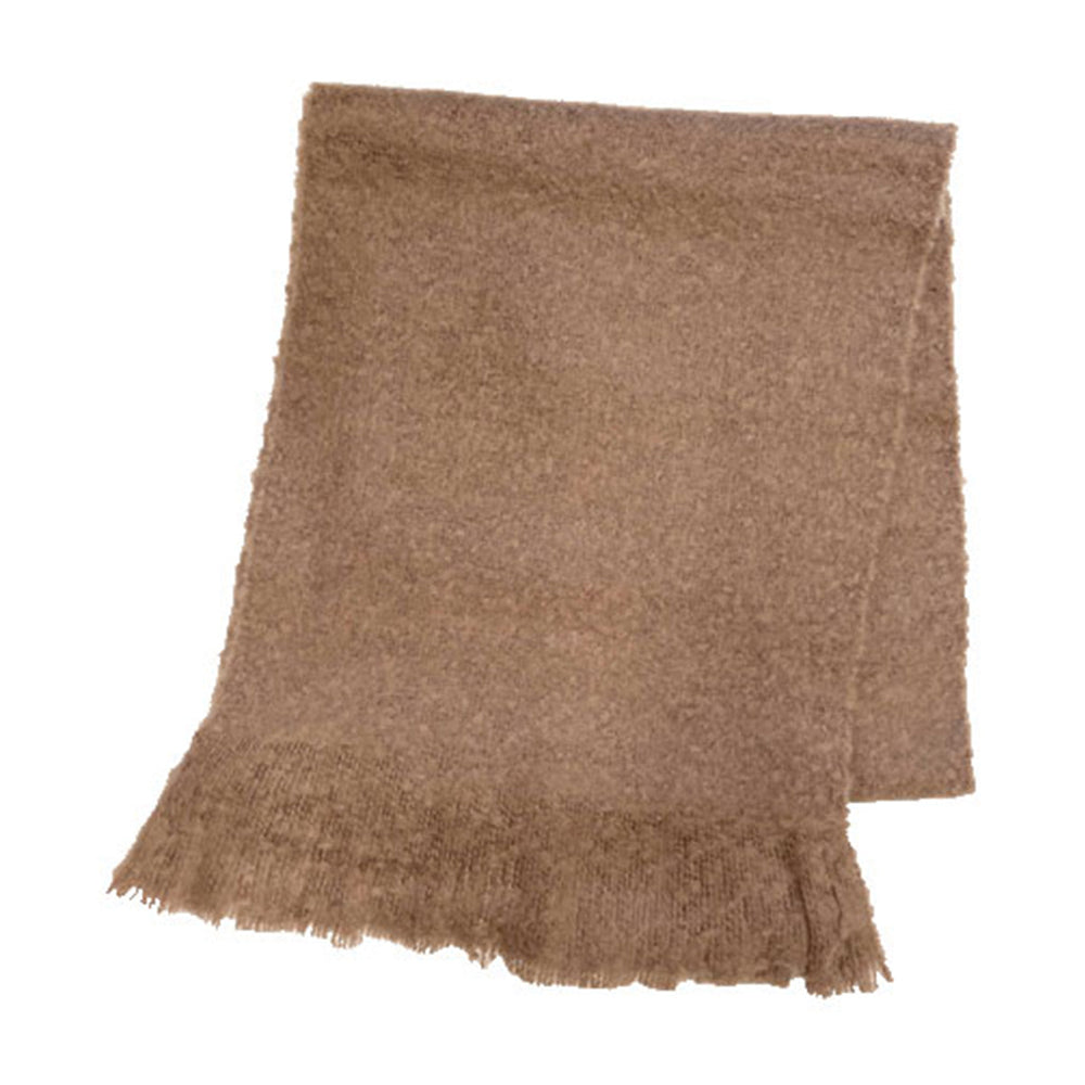 こちらのアイテムは、無地で合わせやすく、ソフトな毛羽立ちでやさしい手触りのアクリルモヘアストールです。カラーはブラウンです。