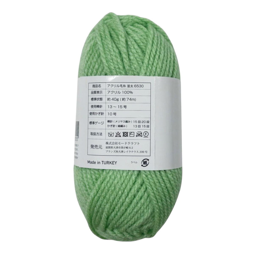 こちらのアイテムは、並太のアクリル毛糸です。使用棒針13-15号、使用かぎ針10号 標準状態で約40g(約74m)です。