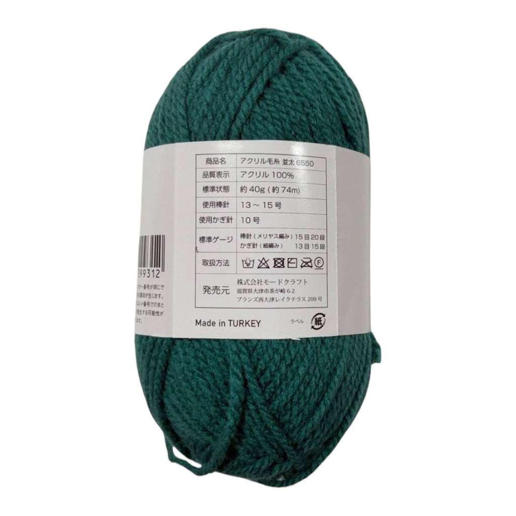 こちらのアイテムは、並太のアクリル毛糸です。使用棒針13-15号、使用かぎ針10号 標準状態で約40g(約74m)です。