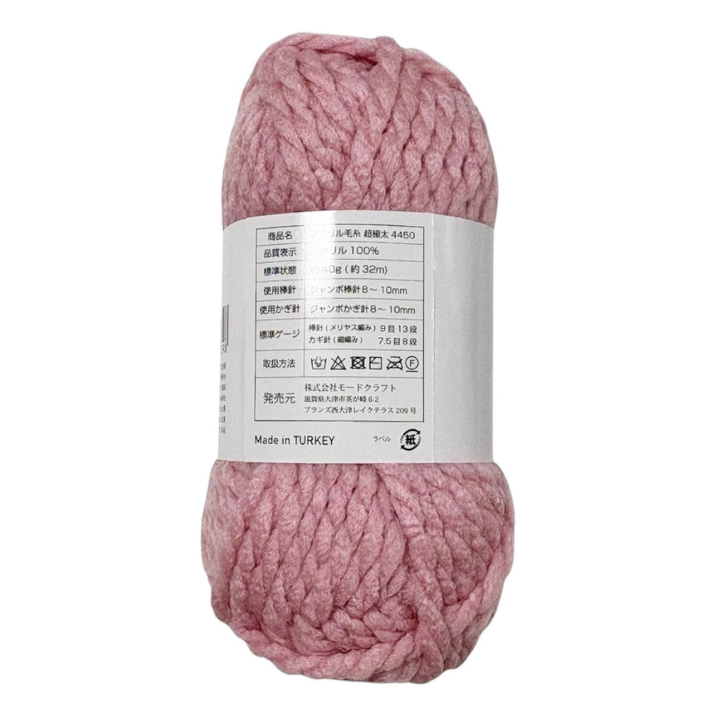 こちらのアイテムは、超極太のアクリル毛糸です。ジャンボ棒針8-10mm、かぎ針8-10mm 標準状態で約40g(約32m)です。