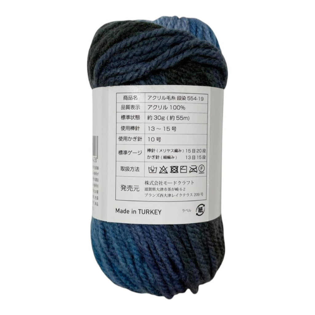 こちらのアイテムは、段染めのアクリル毛糸です。使用棒針13-15号、使用かぎ針10号 標準状態で約30g(約55m)です。