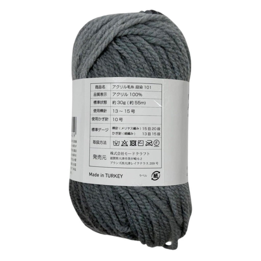 こちらのアイテムは、段染めのアクリル毛糸です。使用棒針13-15号、使用かぎ針10号 標準状態で約30g(約55m)です。