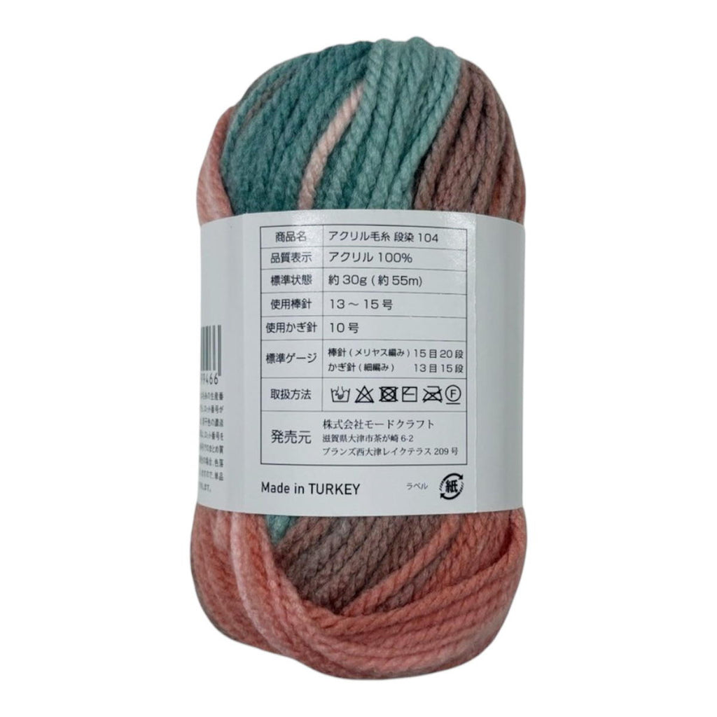 こちらのアイテムは、段染めのアクリル毛糸です。使用棒針13-15号、使用かぎ針10号 標準状態で約30g(約55m)です。