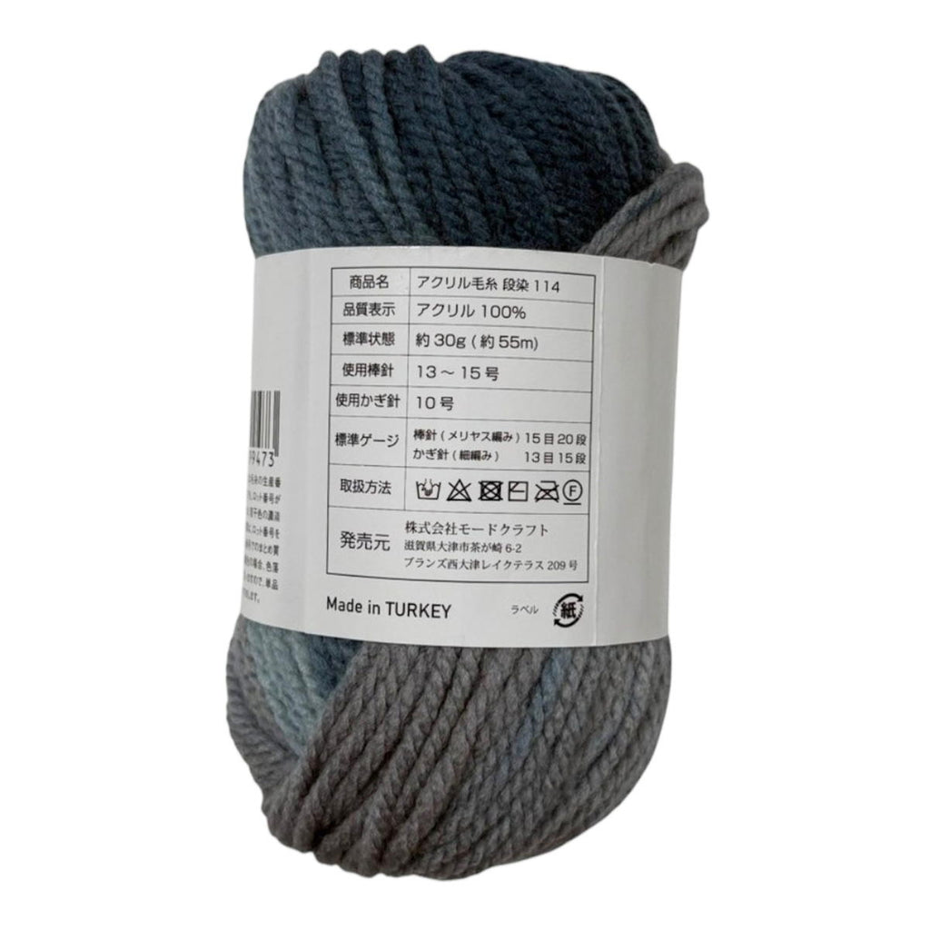 こちらのアイテムは、段染めのアクリル毛糸です。使用棒針13-15号、使用かぎ針10号 標準状態で約30g(約55m)です。