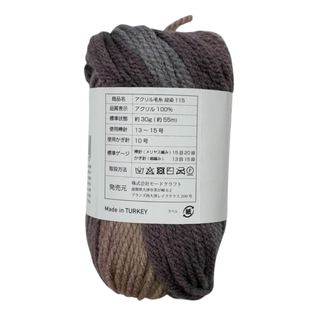 こちらのアイテムは、段染めのアクリル毛糸です。使用棒針13-15号、使用かぎ針10号 標準状態で約30g(約55m)です。
