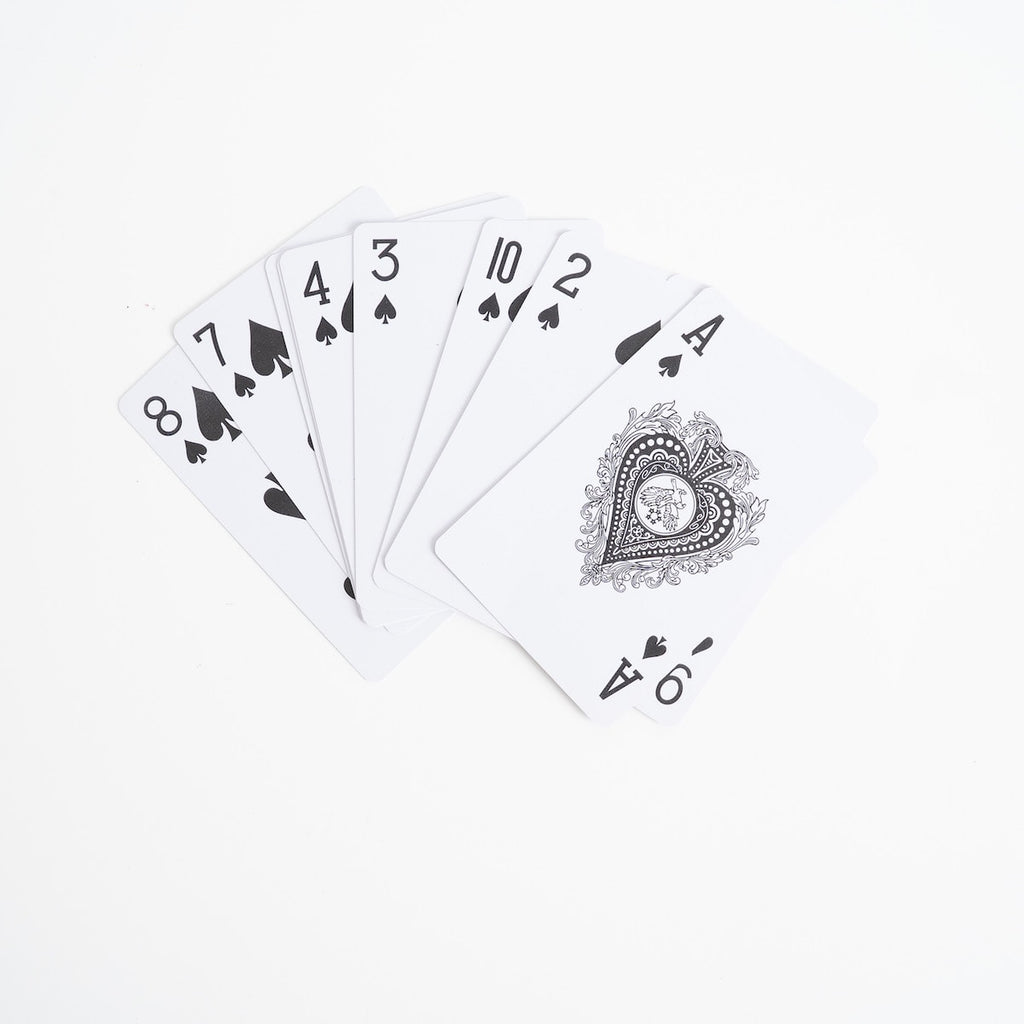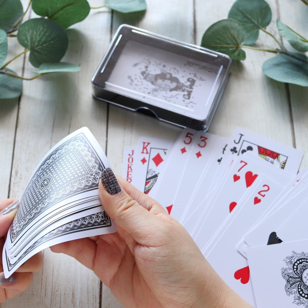 カードの裏面には繊細で上品な模様が施されており、老若男女問わず使いやすいデザインが魅力。ご家庭での団らんタイムから友人とのカードゲーム、さらにはマジック用としても活用できます。派手すぎず、飽きのこないデザインなので、長く愛用できる一品です。