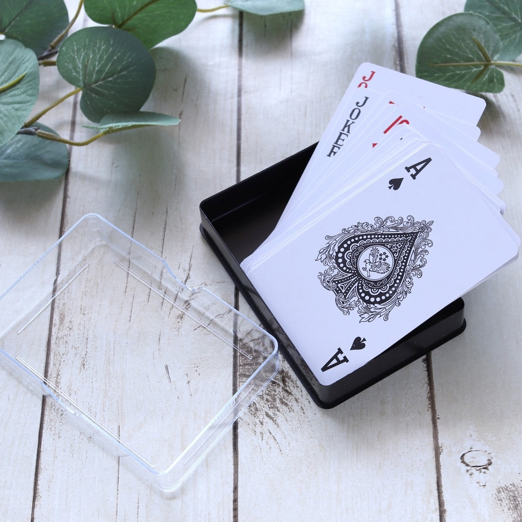 このトランプは、カードもケースもすべてプラスチック製。飲み物をこぼしてもサッと拭けて、紙のようにふやける心配がありません。キャンプやピクニックなどのアウトドアはもちろん、食事の後のテーブルでも気軽に遊べます。イベントや旅行にもぴったりで、場所を選ばず楽しめる便利なアイテムです。