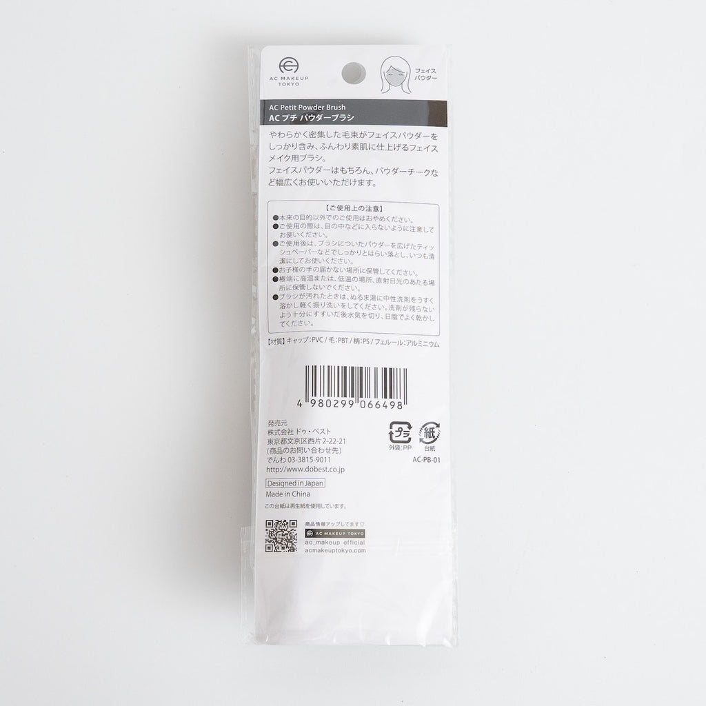 この「AC プチ パウダーブラシ」は、やわらかく密集した毛先が特長。肌あたりが優しく、フェイスパウダーをふんわりと自然にのせることができます。メイクの仕上げにひと塗りするだけで、肌全体にムラなく均一に粉が広がり、化粧崩れもしっかり防止。チクチク感がないため、敏感肌の方にもおすすめできる使い心地です。