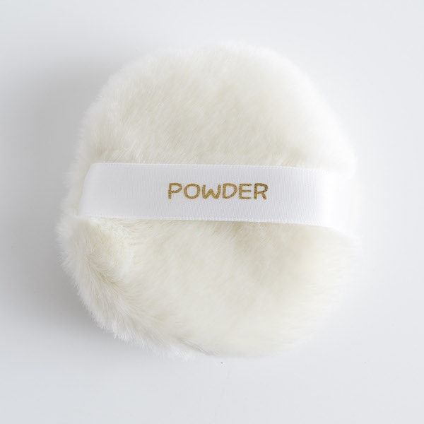 手に収まりやすいサイズ感で、ボディにも使いやすい丸型フォルムを採用しています。パフ中央のリボン部分に指を通すことで安定感が生まれ、動かしやすさにも配慮されています。余計な装飾を省いたシンプルなデザインは、年齢や使用シーンを問わず使いやすく、長く愛用しやすい仕様です。