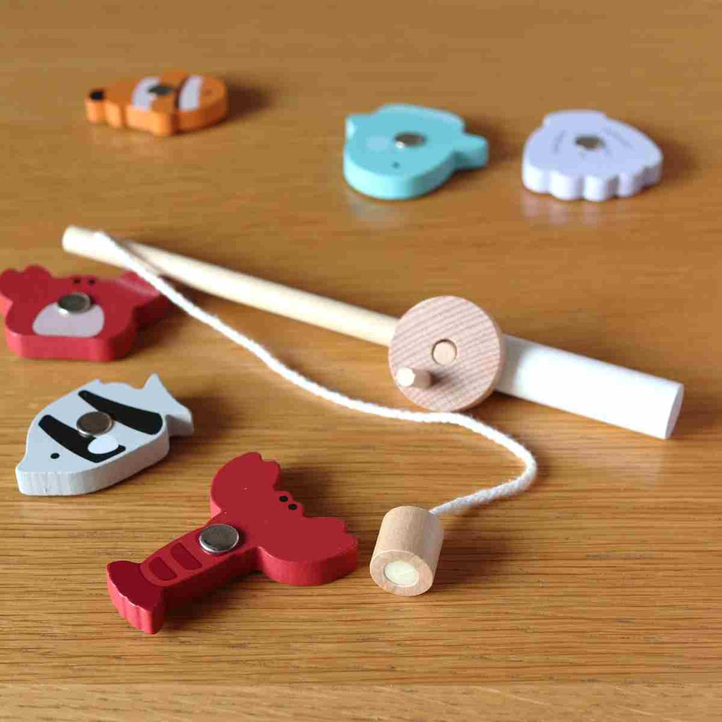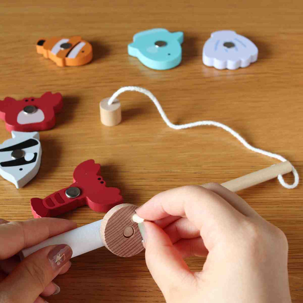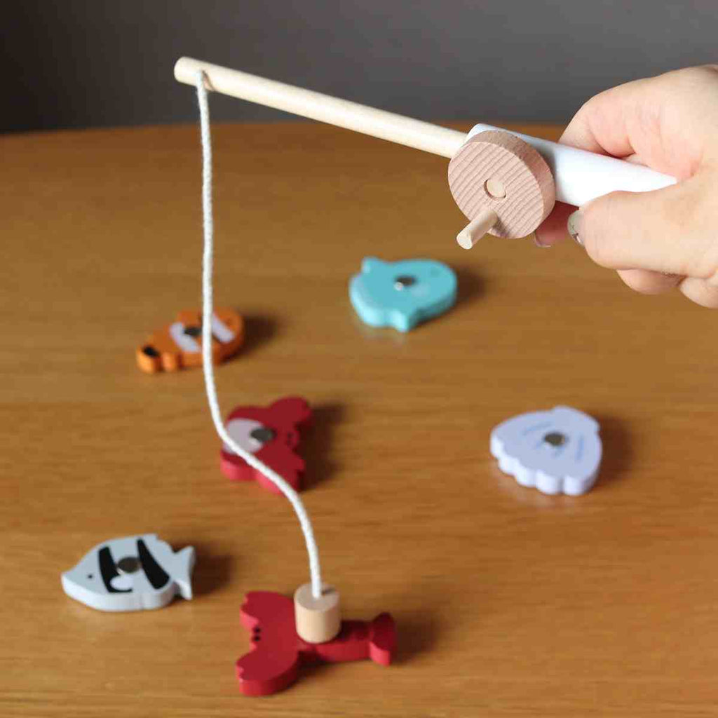 遊びながら学べる!木のぬくもりを感じる「木製お魚つりセット つりざお」