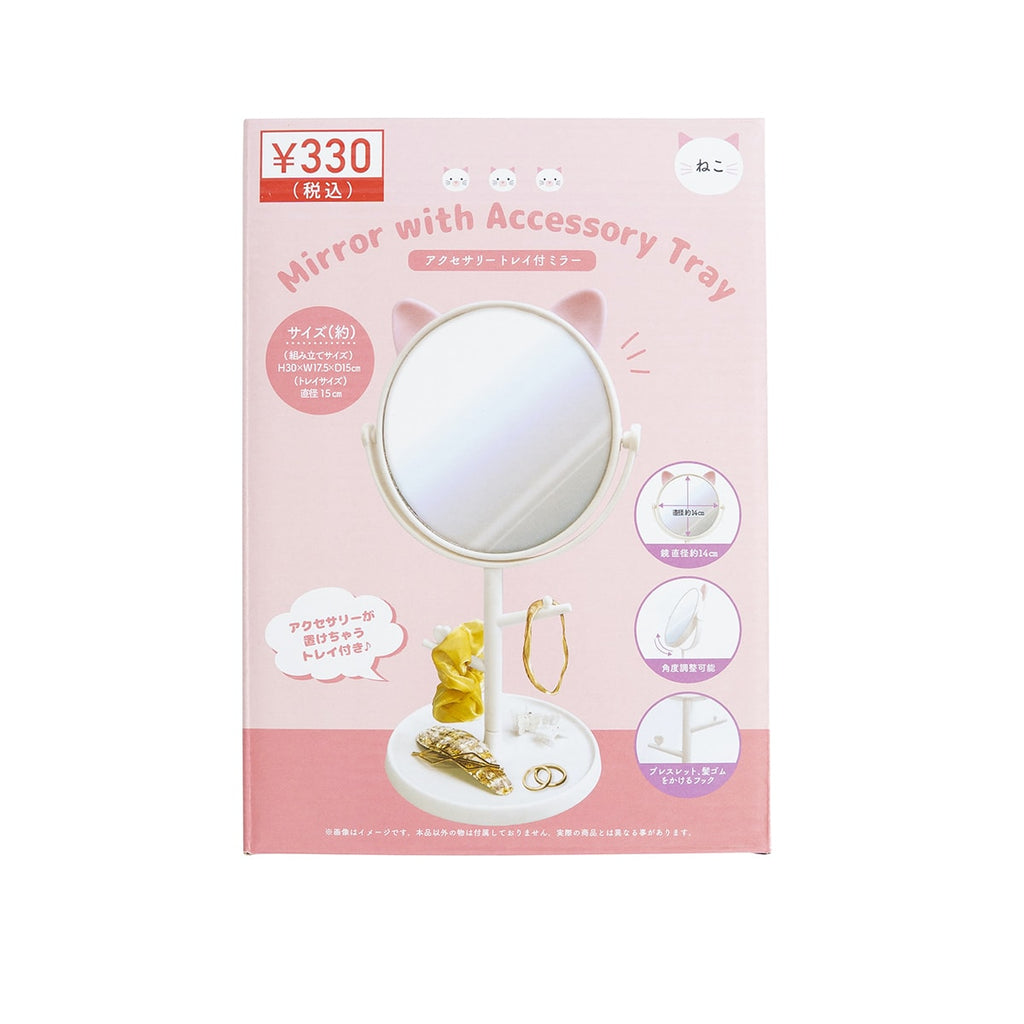 ネコ耳がかわいい♪収納も叶えるアクセサリートレイ付きミラー