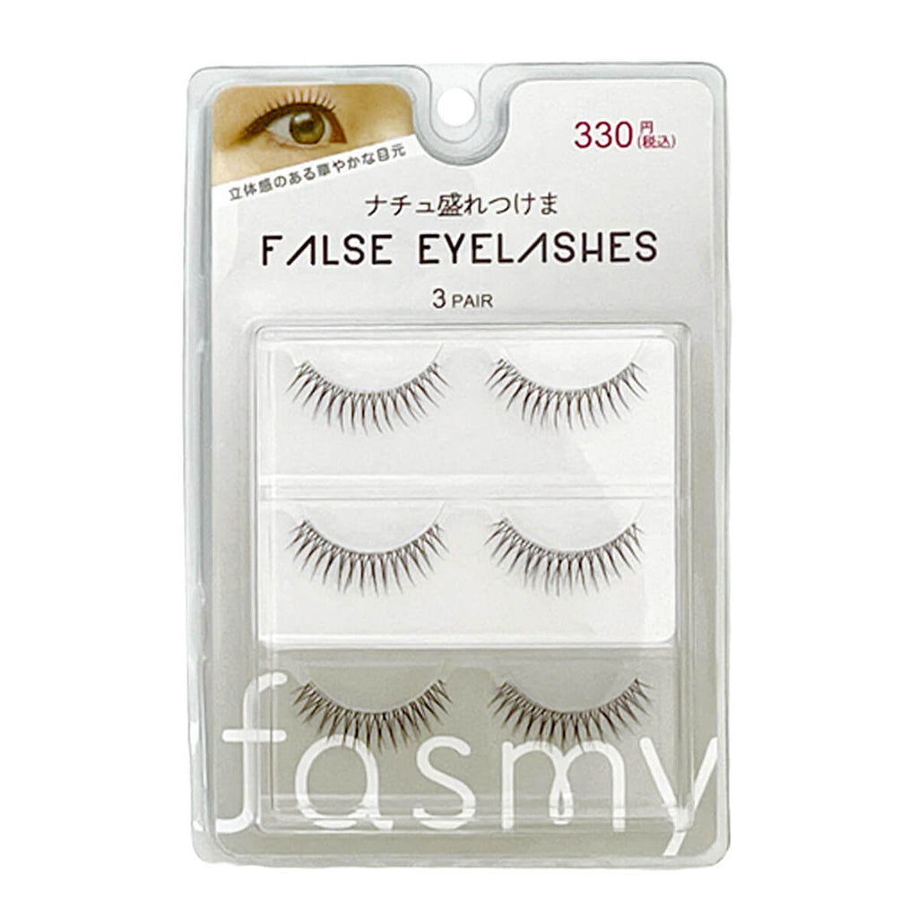 こちらのアイテムは、ワッツのオリジナルコスメシリーズ、fasmy(ファスミー)のナチュラルに盛れるつけまつげです。3枚組。